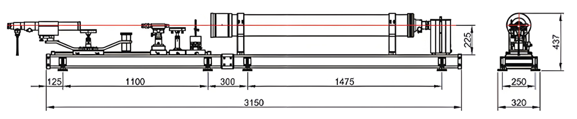 - 1600mm Extended Platform – Supports complex setups with lens collimator and rectangular collimator instruments in larger optical layouts.